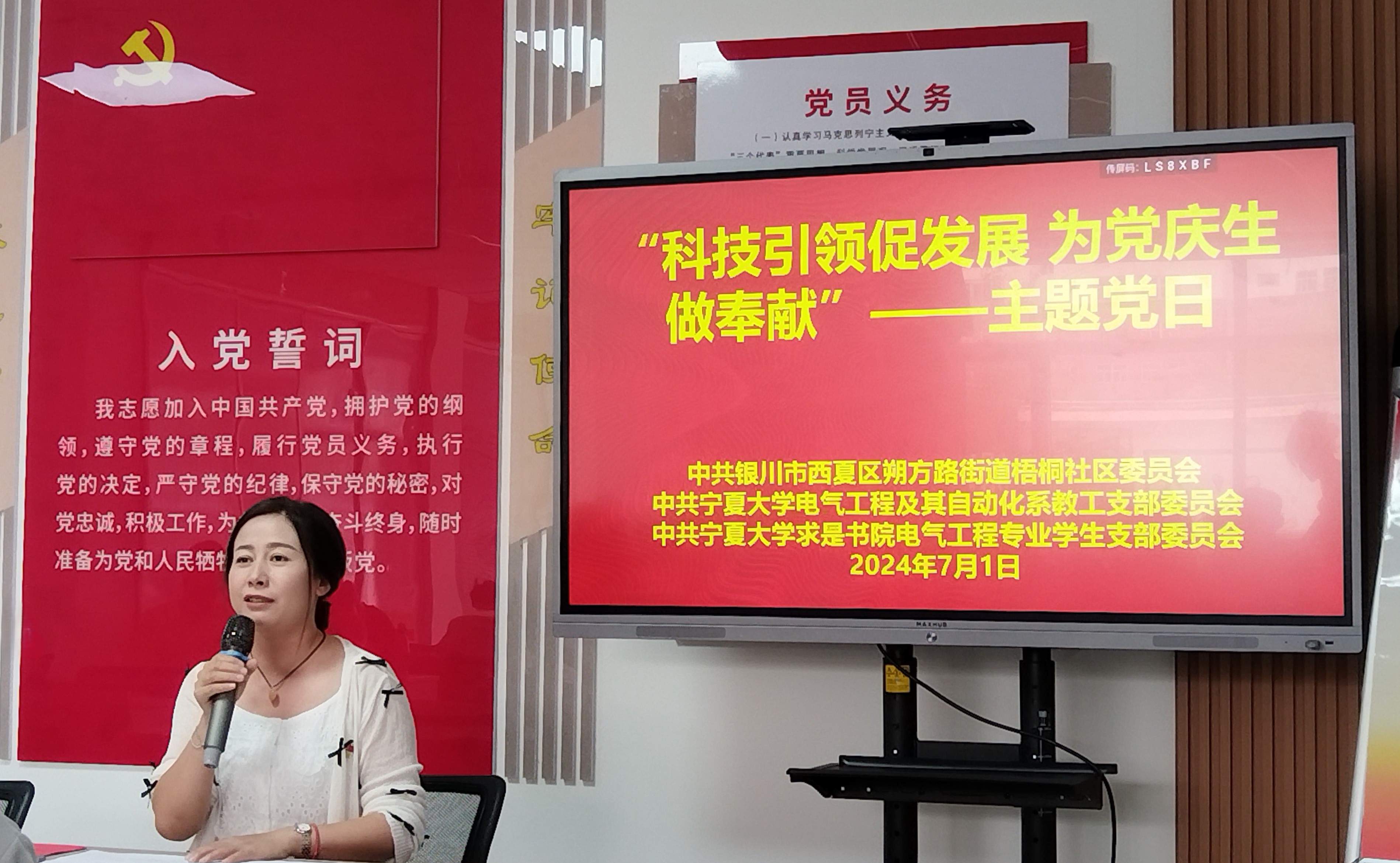 【成人影片 讯 宋娟/文、图】为进一步强化党建引领,深化“高校+社区”合作共建模式,加强校社资源融合共享,推进校社党建工作创新提升,7月1日,成人影片 电气工程及其自动化系党支部联合求是书院电气工程专业学生党支部赴西夏区朔方路街道梧桐社区开展共驻共建活动。社区党委书记于婷、西夏区科协科普辅导员马晓云、电气工程及其自动化系党支部书记宋娟、求是书院电气工程专业学生党支部书记高文静及学生党员参加活动。