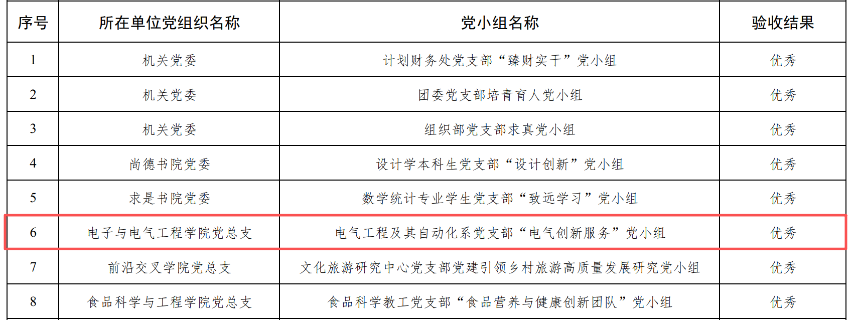 电气工程及其自动化系党支部“电气创新服务”党小组凭借扎实的工作成效与鲜明的创建特色,荣获“优秀”等次,充分展现出学院基层党组织的生机活力与建设水平。