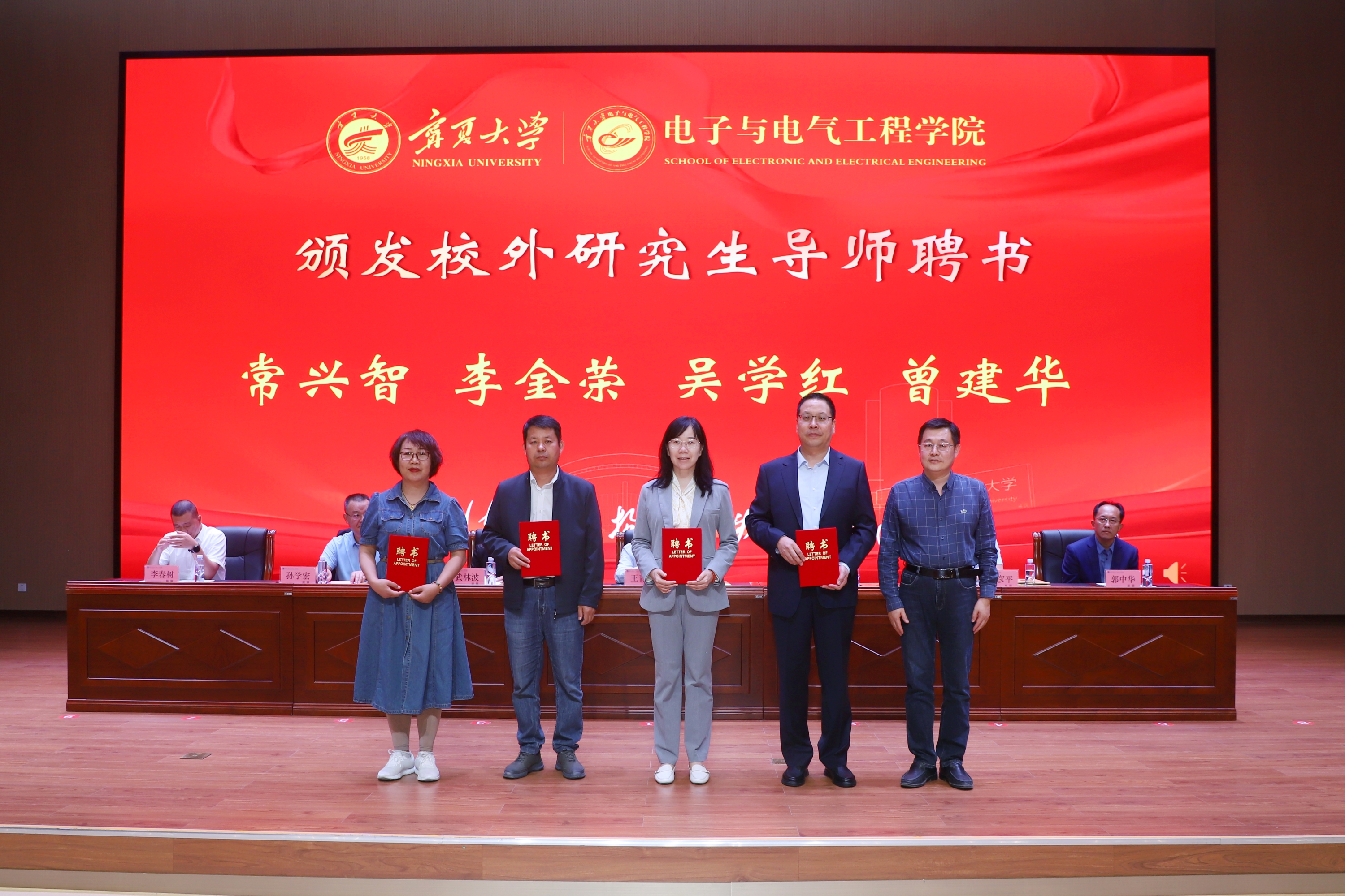 中国移动通信集团宁夏有限公司、中国铁塔股份有限公司宁夏分公司、六盘山实验室、宁夏电投新能源有限公司、宁夏枣泉发电有限责任公司、深圳市讯方技术股份有限公司、中国电信股份有限公司宁夏公司银川分公司、华为技术有限公司/华为宁夏教育行业分部、中国移动通信集团宁夏有限公司银川分公司、中国联合网络通信有限公司宁夏公司银川分公司、宁夏无线电监测站、百科荣创(山东)科技发展有限公司、宁夏多电国际新能源科技有限责任公司、宁夏隆基宁光仪表股份有限公司、宁夏信息通信行业协会/宁夏互联网协会、宁夏通信学会、宁夏西北骏马电机制造股份有限公司、宁夏通信规划设计院(有限公司)、国网宁夏电力有限公司电力科学研究院、宁夏电通物联网科技股份有限公司、中电建新能源集团股份有限公司宁夏分公司、宁夏贺岩微电子有限公司、宁夏金晶科技有限公司等单位领导、数理与信息学部、求是书院、学院教师和2024级新同学参加典礼。