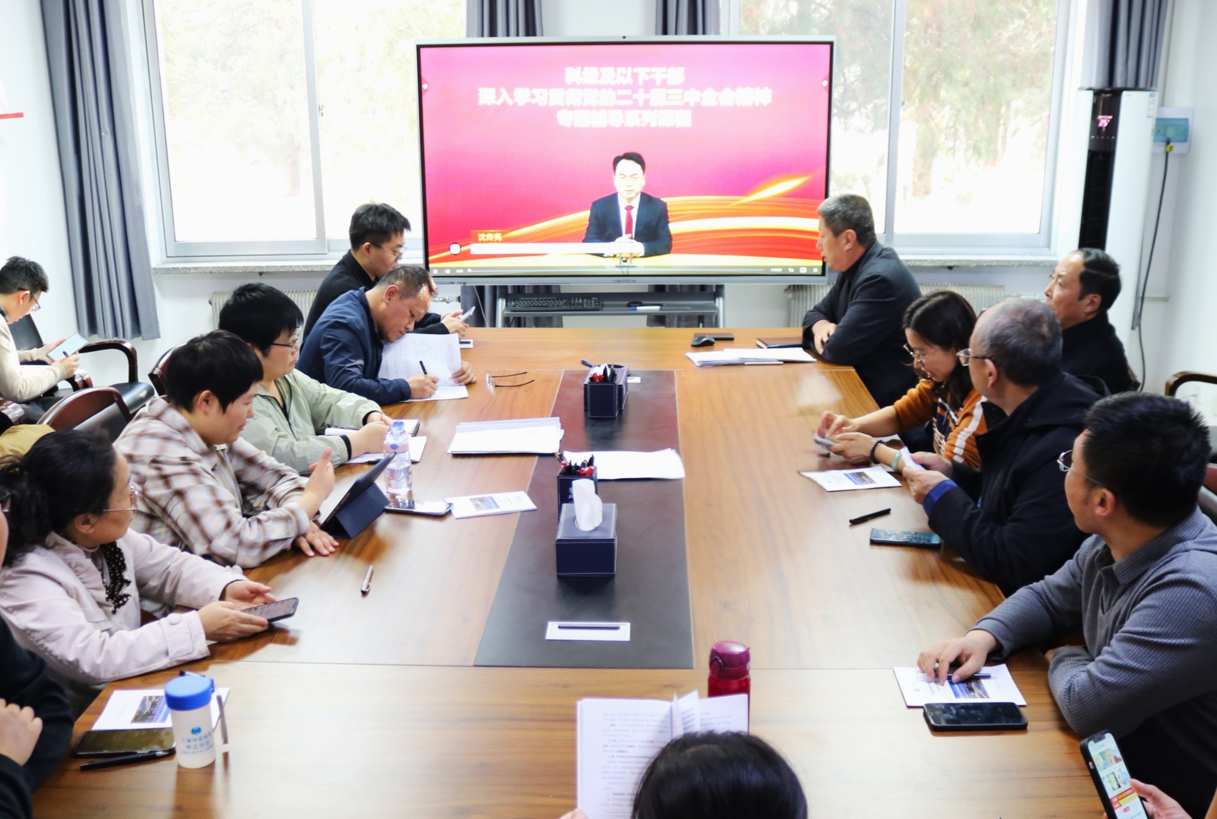学习会上,参会人员集中观看学习中央党校(国家行政学院)研究室主任沈传亮教授主讲的《深入学习贯彻习近平总书记关于全面深化改革的一系列新思想、新观点、新论断和党的二十届三中全会精神》专题辅导报告。报告从“深刻领会和把握进一步全面深化改革的主题、重要性和必要性”“深入学习贯彻习近平总书记关于全面深化改革的一系列新思想、新观点、新诊断”和“深刻领会和把握进一步全面深化改革的重大原则”三个方面对党的二十届三中全会精神进行辅导解读,报告指出党的二十届三中全会是在以中国式现代化全面推进强国建设、民族复兴伟业的关键时期召开的一次重要会议。全会在进一步全面深化改革的指导思想中,鲜明提出“更加注重系统集成,更加注重突出重点,更加注重改革实效”等“三个更加注重”,是我们党在锐意改革中得出的规律性认识,既体现了新时代全面深化改革所积累的新经验,又为进一步全面深化改革提供了科学的思想方法和工作方法,为成功书写新征程上推进中国式现代化的时代新篇提供了基本遵循。