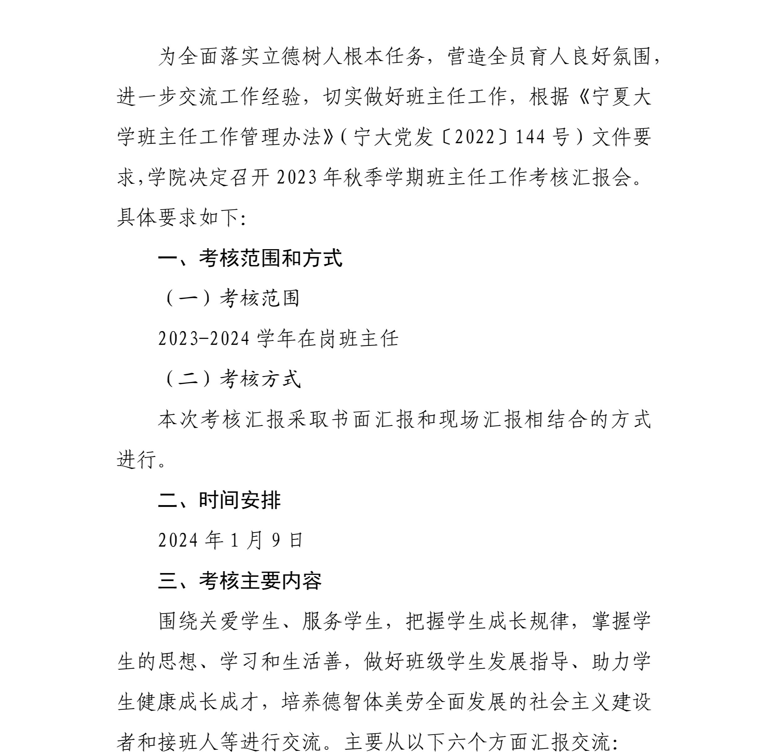 关于做好2023年秋季学期班主任工作考核汇报会的通知