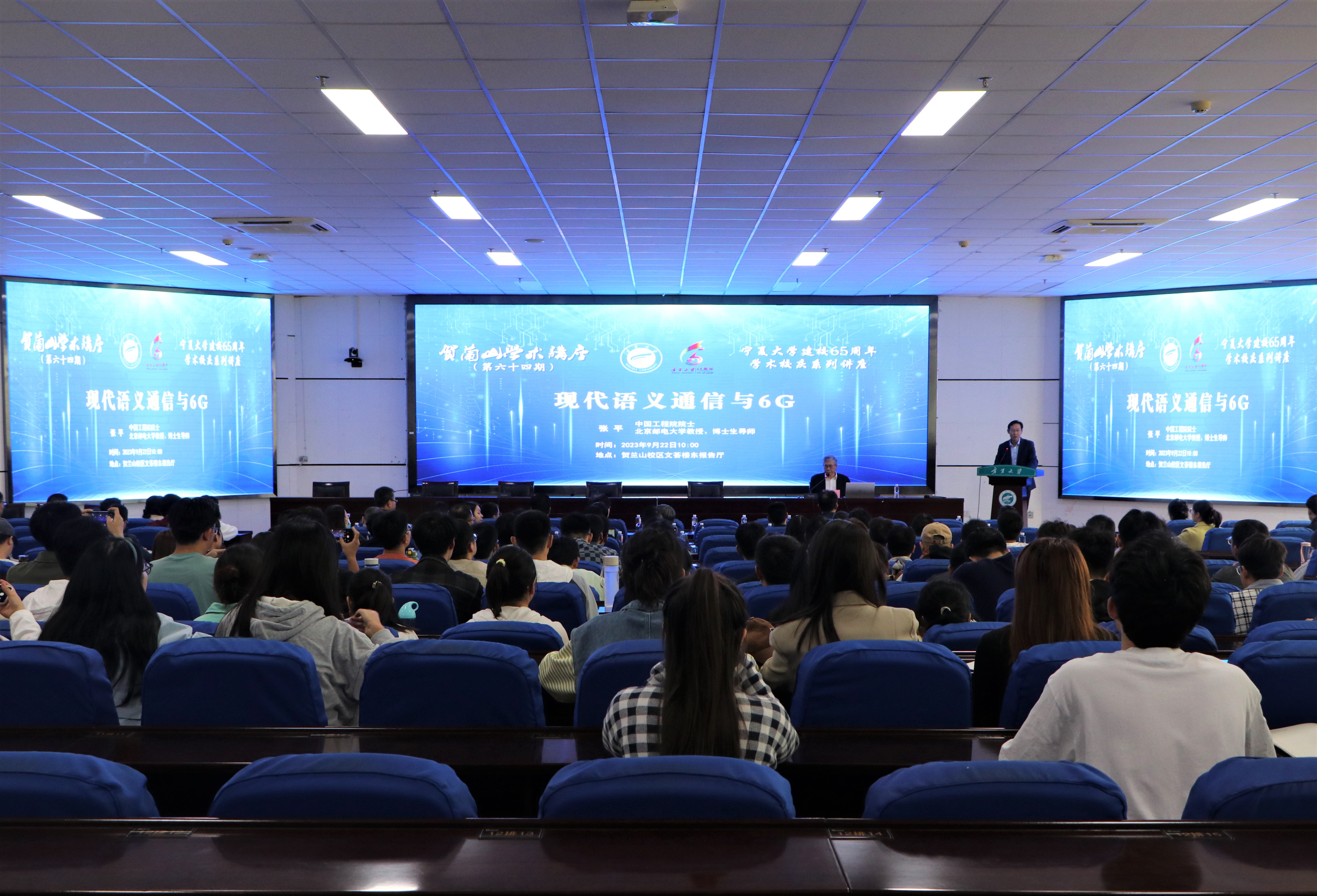 宁夏通信行业相关专业人士、我校科学技术研究院和学院师生300余人现场聆听了报告会。